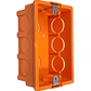 Caja de distribución para instalaciones empotradas en tabiques, con oreja metálica para un montaje seguro en paredes huecas. Ideal para la distribución de conexiones eléctricas en hogares y oficinas.